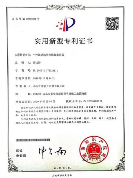 榮譽(yù)資質(zhì) 一種起重機(jī)用電纜收集裝置