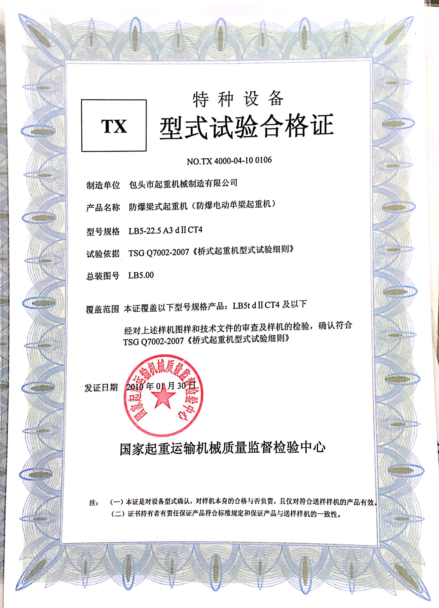 | 發(fā)證機(jī)構(gòu): | 國家起重運(yùn)輸機(jī)械質(zhì)量監(jiān)督檢驗(yàn)中心 | 發(fā)證時(shí)間 : | 2010-01-30 |