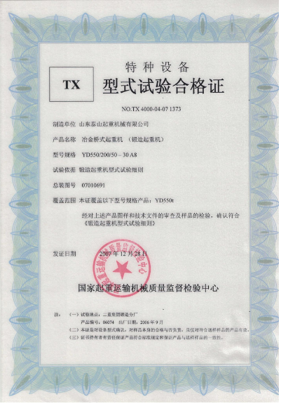 榮譽(yù)資質(zhì) 冶金橋式起重機(jī)(鍛造起重機(jī))