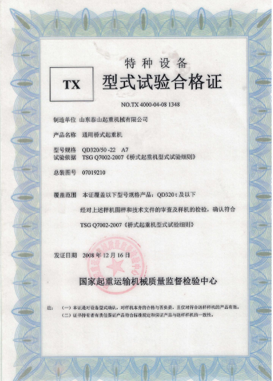 | 發(fā)證機(jī)構(gòu): | 國家起重運(yùn)輸機(jī)械質(zhì)量監(jiān)督檢驗(yàn)中心 | 發(fā)證時(shí)間 : | 2008-12-16 |