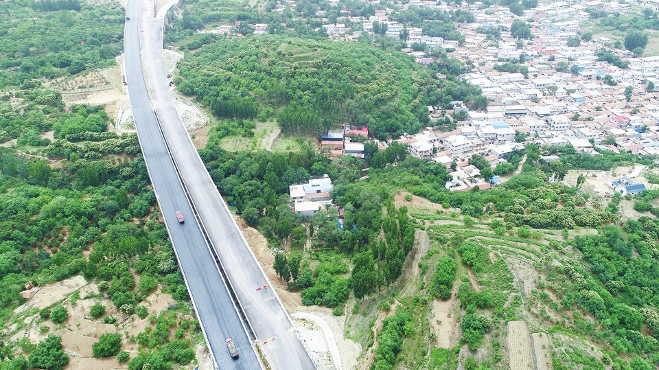 2日,航拍濟(jì)泰高速。 新時報記者王汗冰 攝
