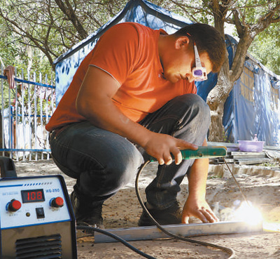 “柴油發(fā)電機噪聲大,吵得人耳朵疼,現(xiàn)在一插電直接就能開工了。”說著,阿米爾江拿起堆在地上的鐵皮材料開始工作,火花四濺,卻少了以往的噪音和難聞的柴油味。
