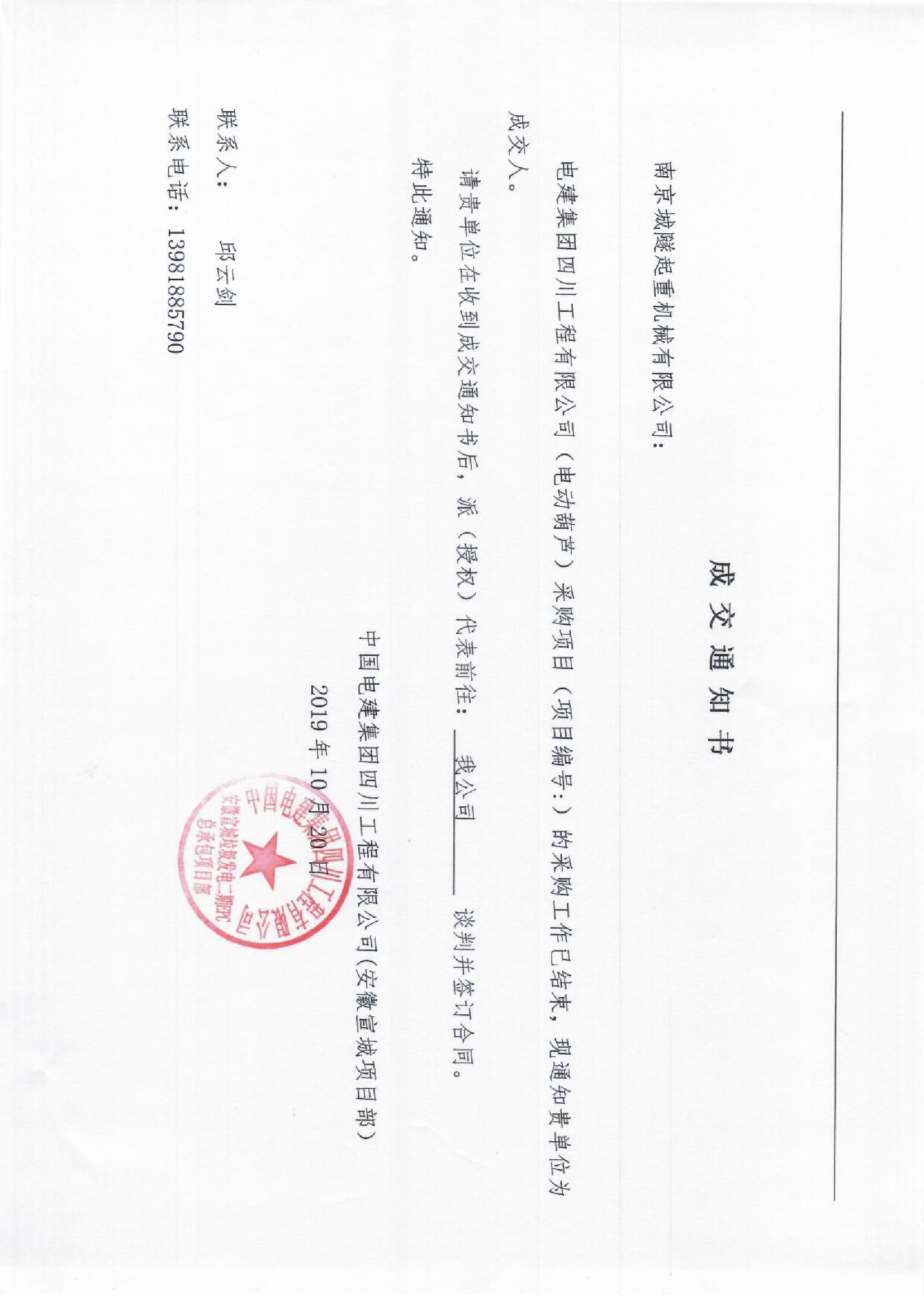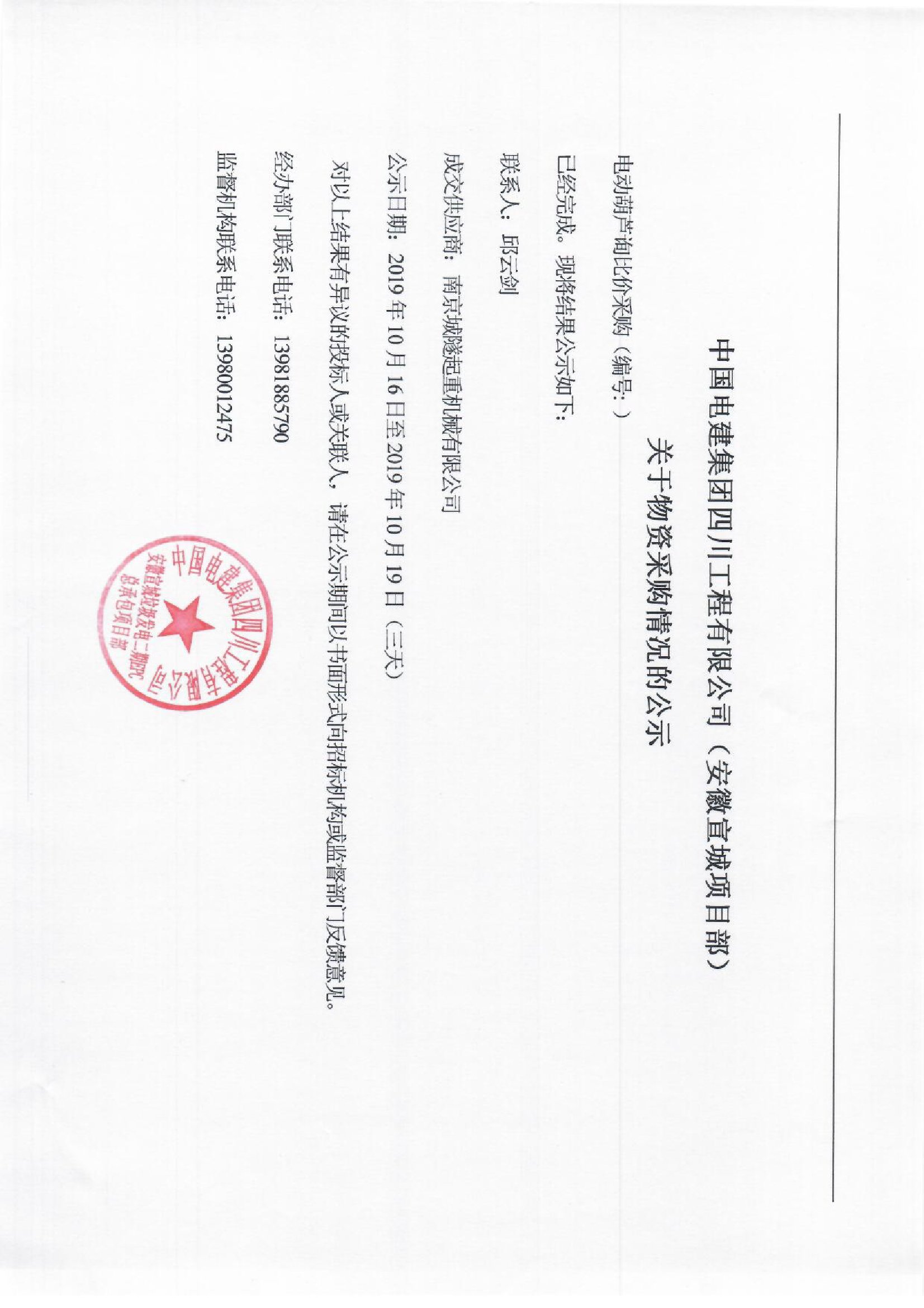 移動(dòng)版:【設(shè)備類】中國(guó)電建山東電建公司四川工程公司電動(dòng)葫蘆采購(gòu)項(xiàng)目成交公示