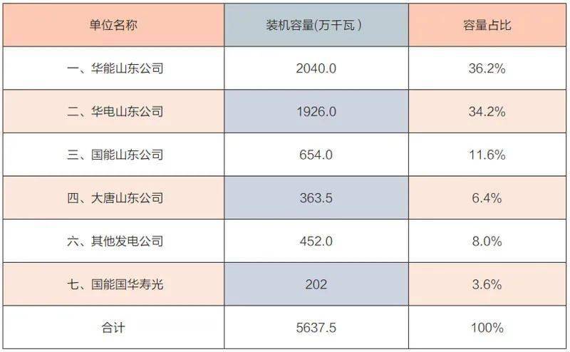 山東省火力發(fā)電裝機情況