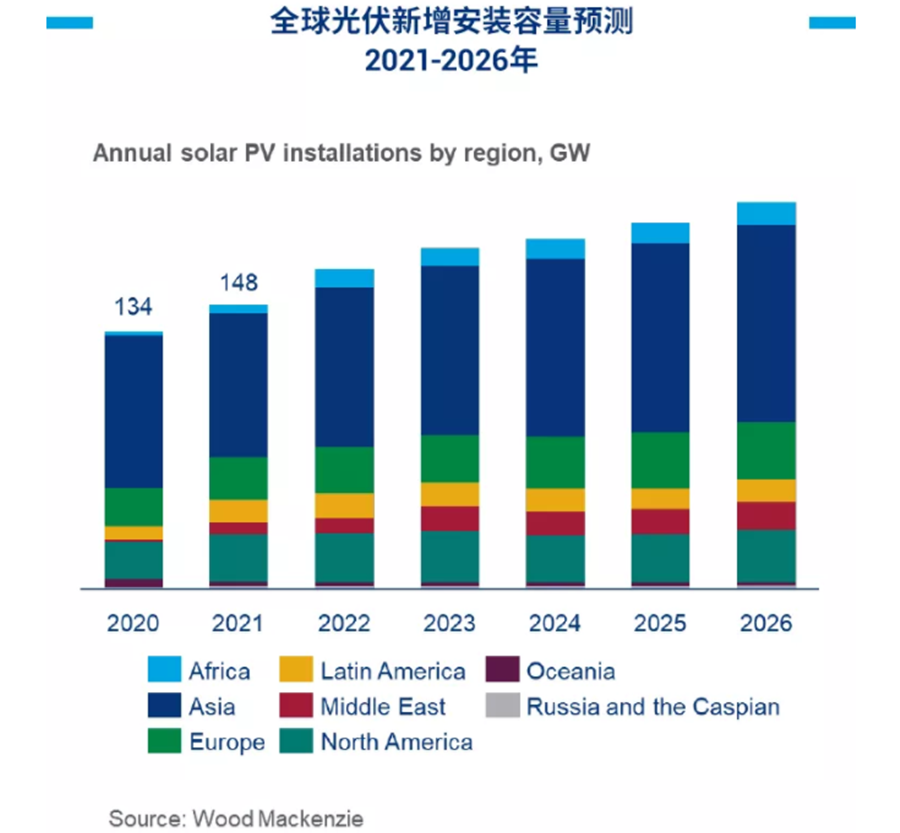 伍德麥肯茲 | 預(yù)計2021年全球光伏新增安裝容量實現(xiàn)148GW,同比增長11%
