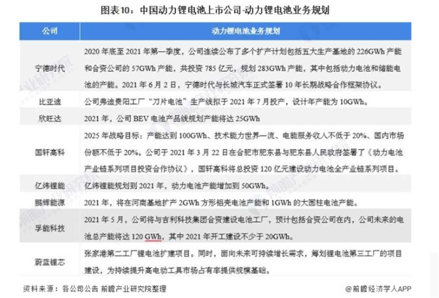 動(dòng)力鋰電池行業(yè)上市公司動(dòng)力鋰電池業(yè)務(wù)規(guī)劃對(duì)比