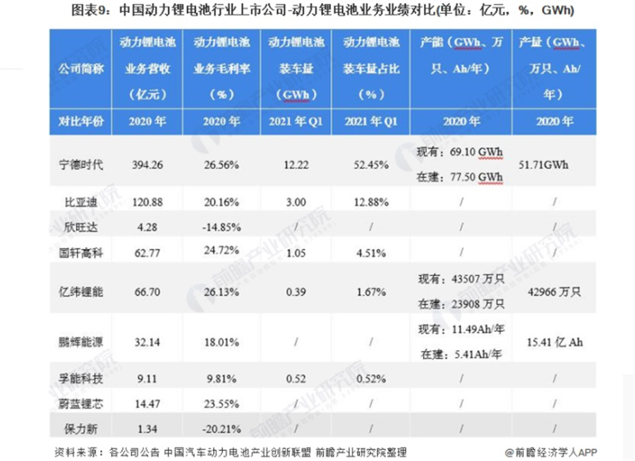 2021年動(dòng)力鋰電池行業(yè)上市公司業(yè)績(jī)對(duì)比分析