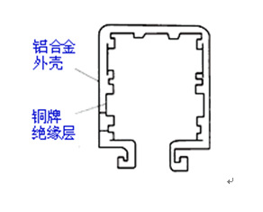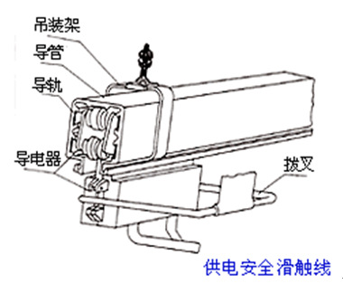 供電安全滑觸線裝置由導管,導電器兩主要部件及一些輔助組件構成如圖: