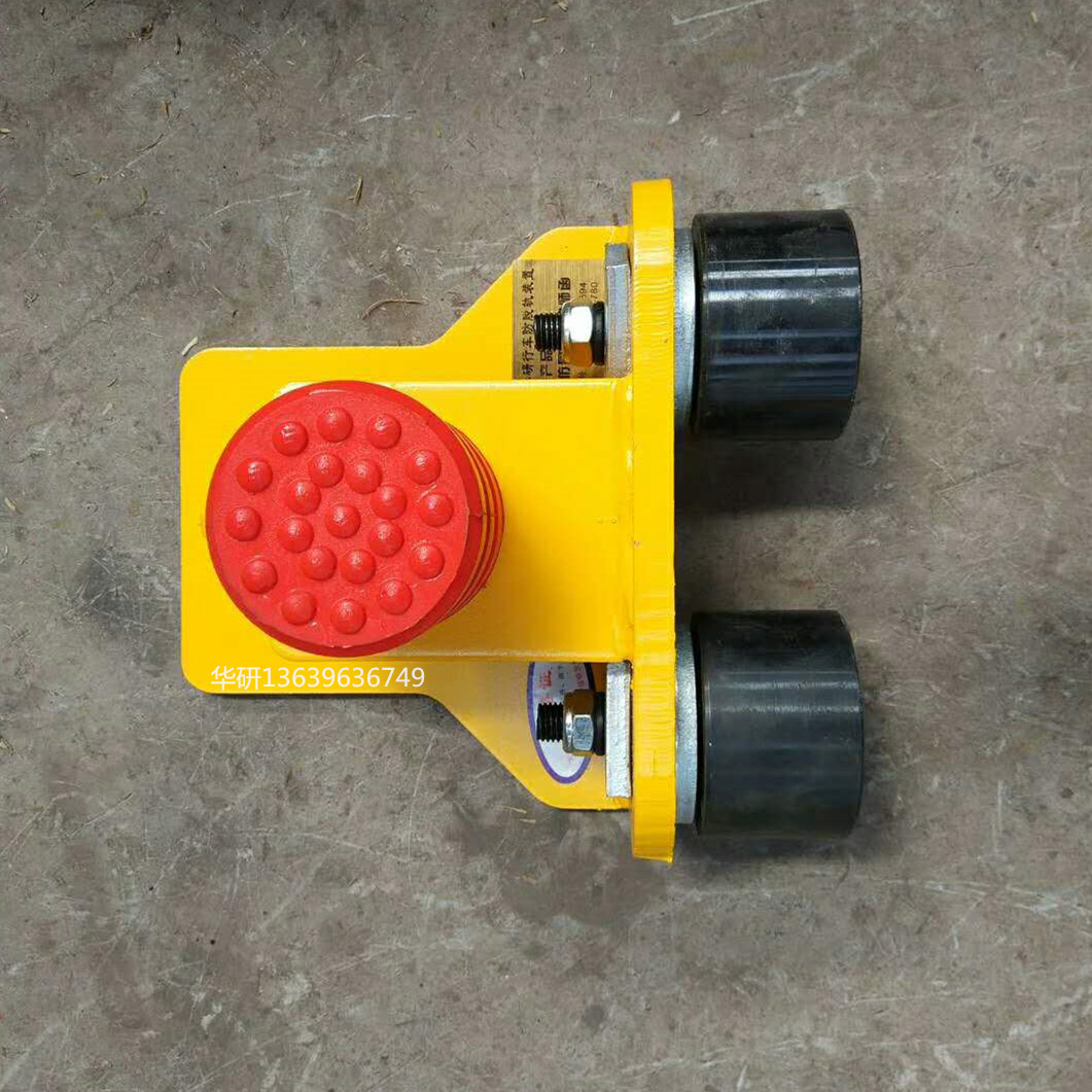 本裝置適用于單梁,雙梁起重機(jī)大車運(yùn)行機(jī)構(gòu)及雙梁小車運(yùn)行機(jī)構(gòu),適用車輪分別為L(zhǎng)D輪結(jié)構(gòu)和角形軸承箱車輪結(jié)構(gòu)。本裝置加裝在運(yùn)行端梁前端,依靠運(yùn)行軌道兩側(cè)的水平輪,限制起重機(jī)大車輪沿啃軌傾向,在大車車輪摩擦軌道之前,先行以滾動(dòng)方式與軌道接觸,來(lái)抵消大車運(yùn)行部分水平側(cè)向力,防止啃軌;同時(shí)兩只水平輪安裝位置低于軌道平面及車輪輪沿,這也相當(dāng)于**限度地加高了車輪輪沿的高度。防止因?yàn)樵囕嗇喲靥珳\而造成的起重機(jī)脫軌事故。