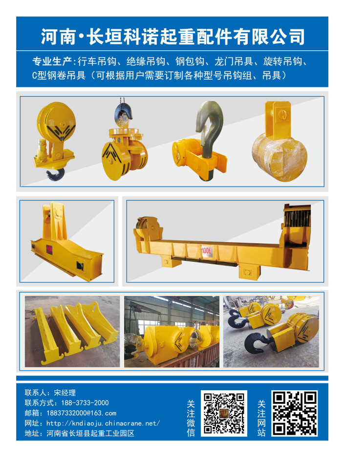 聯(lián)系熱線:長(zhǎng)垣縣科諾起重配件有限公司,專業(yè)生產(chǎn)單雙梁吊鉤組,起重吊具??筛鶕?jù)用戶需求定制產(chǎn)品。歡迎新老客戶咨詢!