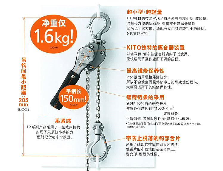日本KITO鬼頭原裝進(jìn)口手扳葫蘆LX型: