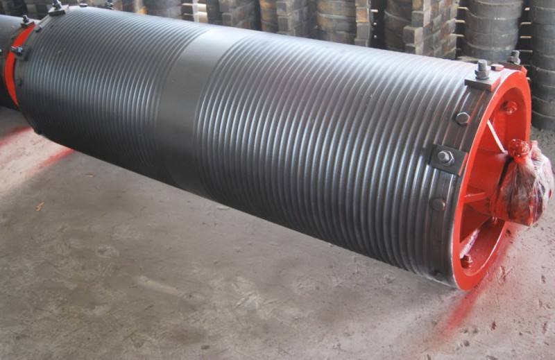 卷筒加工材料一般采用不低于HT20—40鑄鐵,特殊需要時(shí)可用ZG25、ZG35鑄鋼或采用Q235B、Q345B鋼板焊接。如果起升高度較大的時(shí)候,為了縮小卷筒的尺寸,可采用表面帶導(dǎo)向螺旋槽或光滑的卷筒進(jìn)行多層卷繞,但鋼絲繩磨損較快,適用于慢速和工作類型較輕,噸位較低的起重機(jī)。鋼板卷筒組則主要適用于大噸位、性能要求高的起重機(jī)械設(shè)備