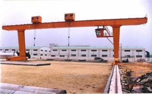 門式起重機橋式起重機的一種變形,又叫龍門吊。主要用于室外的貨場、料場貨、散貨的裝卸作業(yè)。門式起重機具有場地利用率高、作業(yè)范圍大、適應(yīng)面廣、通用性強等特點,在港口貨場得到廣泛使用.