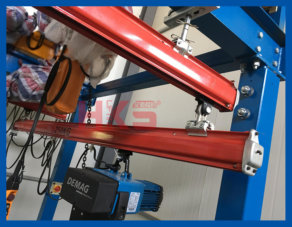 KBK軌道系統(tǒng),可選鋁合金軌道、合金鋼軌道,通常配備環(huán)鏈葫蘆、氣動葫蘆、氣動平衡吊作為起升機(jī)構(gòu),橫梁和小車移動多以手動為主。