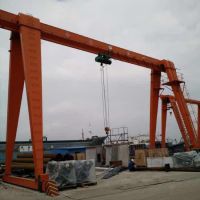 MH門式起重機(又稱龍門吊)是橋架通過兩側(cè)支腿支撐在地面軌道上的橋架型起重機。在結構上由門架、大車運行機構、起重小車和電氣部分等組成。有的門式起重機只在一側(cè)有支腿,另一側(cè)支撐在廠房或棧橋上運行,稱作半門式起重機。門式起重機的門架上部橋架(含主梁和端梁)、支腿、下橫梁等部分構成。為了擴大起重機作業(yè)范圍,主梁可以向一側(cè)或兩側(cè)伸出支腿以外,形成懸臂。也可采用帶臂架的起重小車,通過臂架的俯仰和旋轉(zhuǎn)擴大起重機作業(yè)范圍。