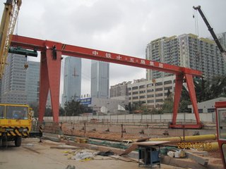 ③造船龍門起重機:用于船臺拼裝船體,常備有兩臺起重小車:一臺有兩個主鉤,在橋架上翼緣的軌道上運行;另一臺有一個主鉤和一個副鉤,在橋架下翼緣的軌道上運行,以便翻轉(zhuǎn)和吊裝大型的船體分段。起重量一般為100~1500噸;跨度達185米;起升速度為 2~15米/分,還有0.1~0.5米/分的微動速度。