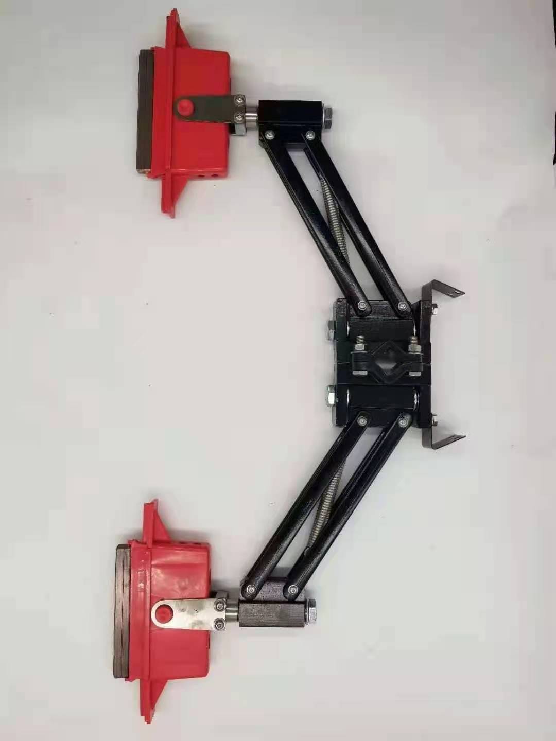集電器滑觸線系統(tǒng)中集電側拾取電能的主要裝置,它通過集電刷與導軌的滑動接觸,將電能直接傳導至用電器,從而實現(xiàn)系統(tǒng)的移動供電。集電器由機械結構的張力裝置和直接與導軌滑動接觸的集電刷兩部分組成。
