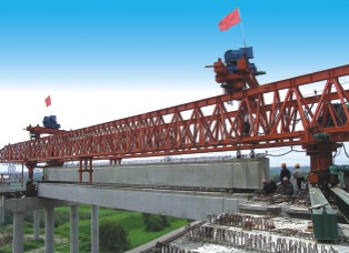 架橋機(jī)**是將預(yù)制好的梁片放置到預(yù)制好的橋墩上去的設(shè)備。架橋機(jī)屬于起重機(jī)范疇,因?yàn)槠渲饕δ苁菍⒘浩崞?,然后運(yùn)送到位置后放下。但其與一般意義上的起重機(jī)有很大的不同。其要求的條件苛刻,并且存在梁片上走行,或者叫縱移。架橋機(jī)是一種運(yùn)行工作范圍廣、性能優(yōu)良、操作方便、結(jié)構(gòu)安全的鋼結(jié)構(gòu)軌道式預(yù)制梁吊裝架設(shè)設(shè)備。